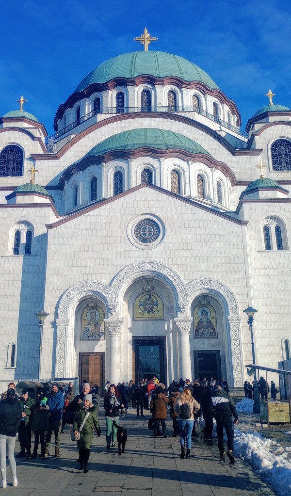 El pasado serbio marcado por el belicismo contrasta -¿contrasta?- con una profunda fe religiosa. Hay muchas iglesias ortodoxas, repletas de frescos, íconos y detalles dorados, como si fueran galerías de arte sacro. Elevada concurrencia de feligreses, todo el tiempo: llegan, se santiguan con una o varias imágenes, sacan fotos, alguna selfie, dejan una donación, se van.