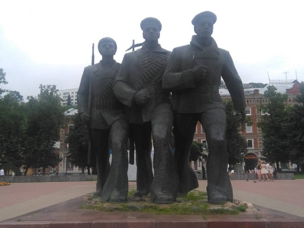 En una plaza, un monumento descomunal al famoso Maksim Gorki.