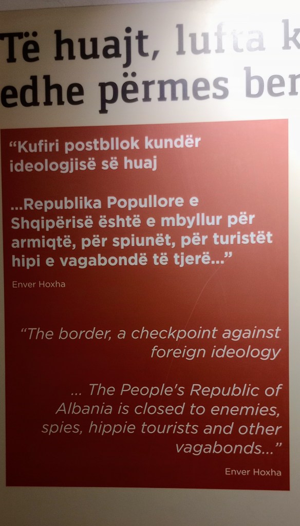 Tras cada ruptura, lanzaba campañas de persecución contra deportistas y artistas que se habían fotografiado con gobernantes de esos países, incluso si las imágenes databan de cuando eran aliados. Veía enemigos en todas partes. Una cita suya expuesta en el museo lo resume: “La República Popular de Albania está cerrada a enemigos, espías, turistas, hippies y otros vagabundos”.