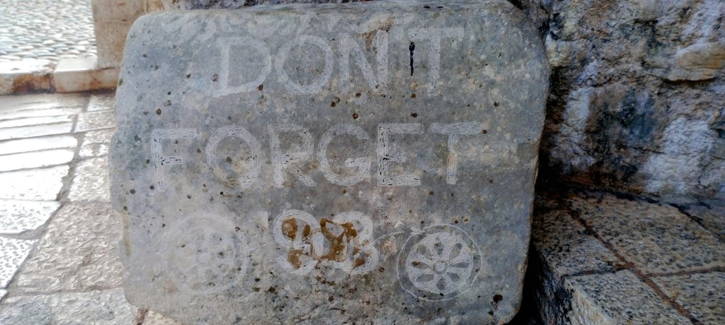 “Don’t Forget”. La leyenda aparece de repente, en una pared de piedra. No es un simple grafiti. Se repite varias veces, en varias paredes, en algún piso. Mostar quiere volver a ser ese lugar tolerante, donde todos conviven en paz.