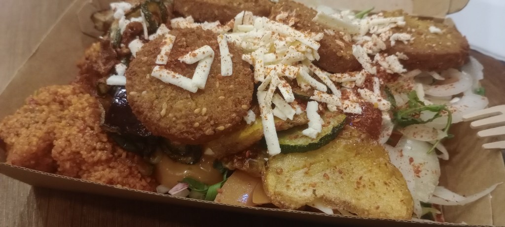 Busco algo para comer. Encuentro un local pequeño dentro de un centro comercial. El hombre que atiende parece salido de otro clima: enorme, vital, rápido. Me sirve falafel y verduras, pregunta cosas que no entiendo y, cuando dudo si poner queso, él resuelve ponerlo igual. Me río. Le pido cubiertos y me mira como si fuera una broma. “Please”, dice mientras abre los brazos e inclina la cabeza. La impaciencia: un idioma universal.