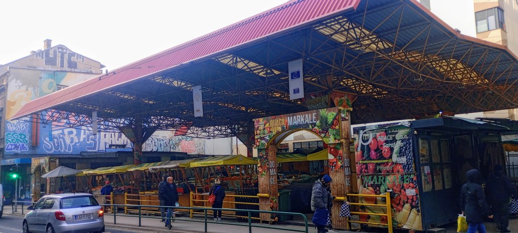 El mercado sigue en pie: frutas, verduras, flores y el movimiento constante de sarajevitas que compran como siempre.