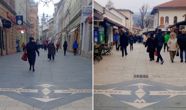 En el piso, una marca divide el este del oeste. Es mucho más que una señal geográfica: de un lado, la Sarajevo otomana; del otro, la Sarajevo austrohúngara. El lema sobre esa línea —Encuentro de Culturas— resume lo que la ciudad fue durante siglos: un crisol de religiones y tradiciones que convivieron en paz casi siempre. Hasta que un día no.