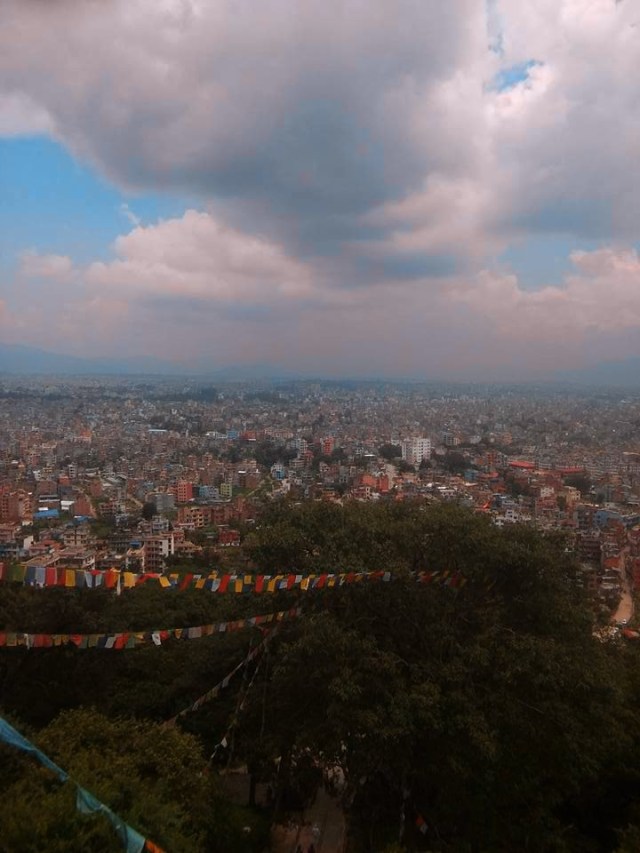 Desde esa cima se puede observar casi la totalidad de la capital nepalesa, con su contaminación, sus obras en construcción, su smog y su belleza, rodeada por las montañas del Himalaya.